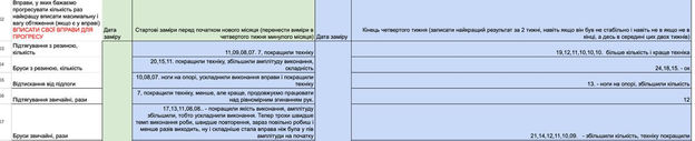 Ведемо таблицю порівняння результатів кожного місяця, де чітко прослідковується динаміка прогресу по вправам або замірам тіла, вазі. Приклади деяких результатів за місяць можете подивитися у галереї з фото нижче: