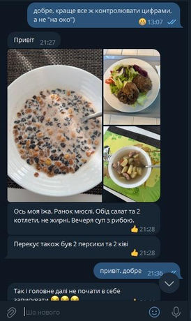 або соціальні мережі - напишіть мені в особисті повідомлення - допоможу скласти програму тренувань під ваші цілі, скоригувати харчування: