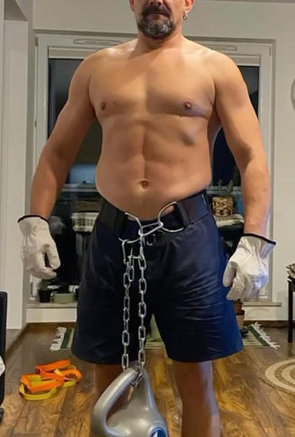 Наступний про кого хочу розповісти - Андрій, 50 років. По молодості займався декілька років кіокушинкай (стиль карате) на серйозному рівні. Переставши тренуватися зʼявився живіт, а згодом біля 50 років зацікавився калістенікою і здоровим способом життя, попередньо кинувши палити. Тренування роблять його більш активним за однолітків.